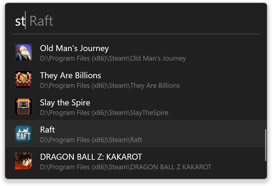 Search your Steam game library and launch the games